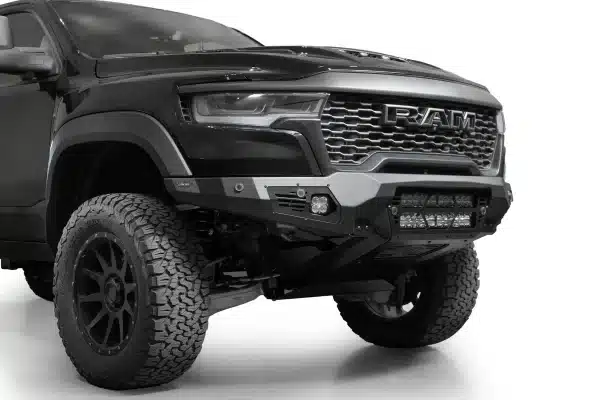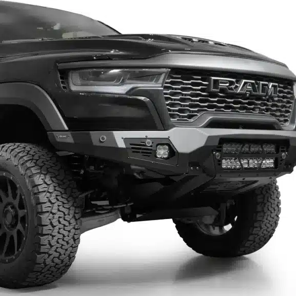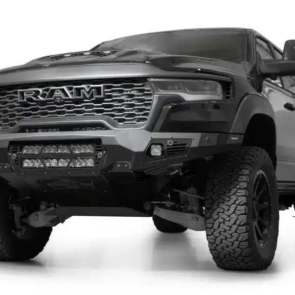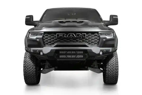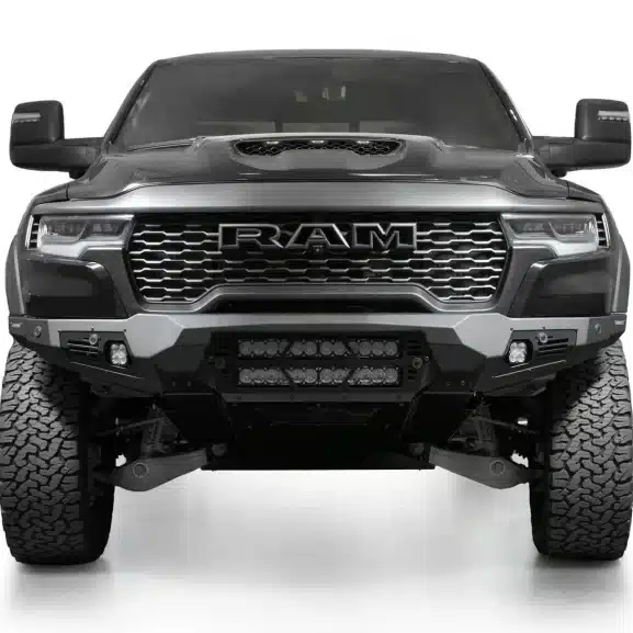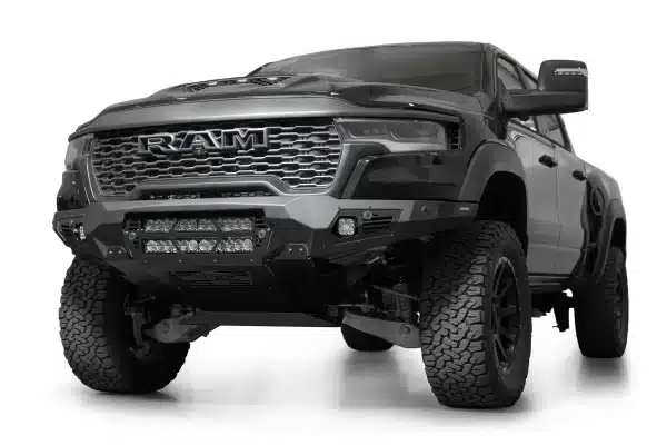 If you’re ready to make your truck look as tough as your driving style, the Ram RHO Light Bar Bomber Front Bumper is here to save the day (and your front end). This bumper is all about flexing some serious muscle with its aggressive plate steel design that screams “don’t mess with me,” while the sleek satin black accent panels give it a stylish edge. Plus, with dual 20” light bar mounts right at the center, you’re getting a major upgrade in your truck’s ability to light up the road, trail, or whatever adventure you’re headed for next.
