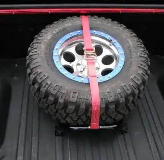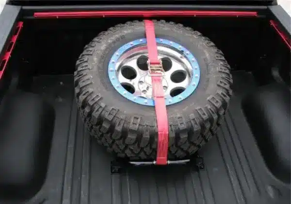 Bed Mounted Tire Carrier Universal – Gloss Black – Red Strap By N-Fab
