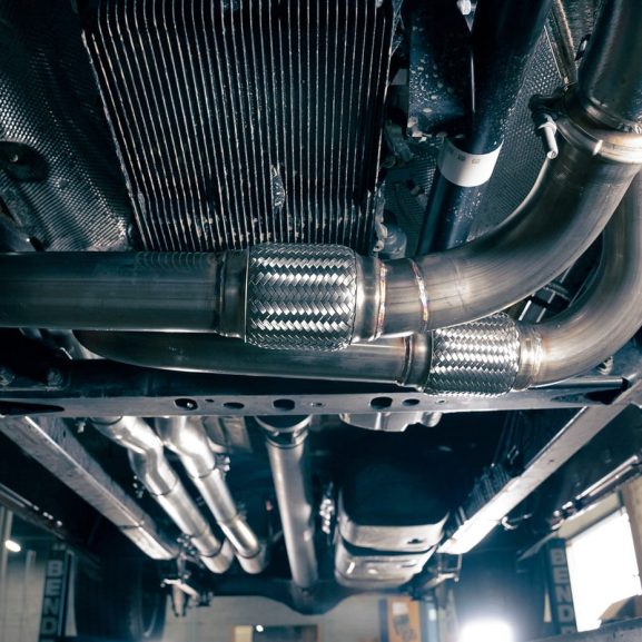 Whether you’re staying stock or getting spicy with an aftermarket setup, this kit’s got you covered. It includes connection points for both factory manifolds and 3″ performance downpipes, and it still plays nice with your factory clamps. (Yep, no zip ties required. We checked.)