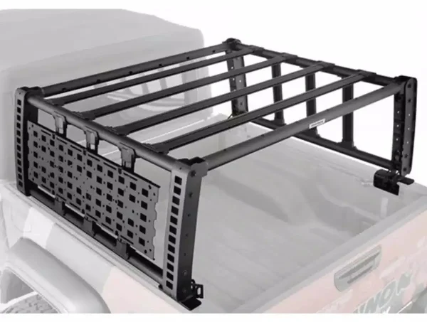 Install? No drilling, no crying. It clamps right onto your factory bed rails or includes bed mounting clamps if you’ve got a less cooperative setup. It even comes with a modular gear plate that mounts just about anywhere on the rack and holds everything from water tanks to your emotional baggage. (Just kidding—emotional baggage must be stored inside the cab.)