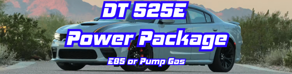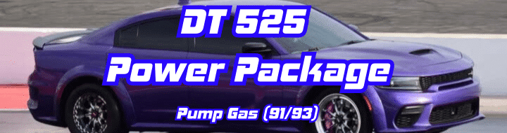 The DT525 takes performance up a notch, adding 40 wheel horsepower over stock while still running on 91/93-octane fuel. This package includes longtube headers for better exhaust flow, a cold air intake, and custom engine and transmission tuning for sharper response. Itโs the perfect next step for Scat Pack owners looking for more power and a deeper, more aggressive exhaust note. If youโre ready to push your build further, the DT525 delivers the performance gains youโre after.